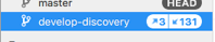 Shown here is that 131 changes can be pulled in from the develop branch and there are 3 outstanding changes to be pushed into develop-discovery.